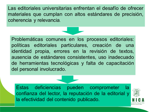 En el contexto actual, donde la información es un recurso valioso y de rápida distribución, la calidad editorial constituye un pilar esencial para garantizar la confianza, la eficacia y el impacto de las publicaciones que se generen. Sin embargo, los procesos editoriales enfrentan desafíos significativos relacionados con la precisión, consistencia, eficiencia y adaptabilidad a estándares internacionales.